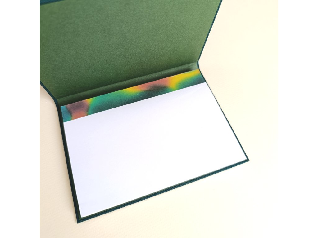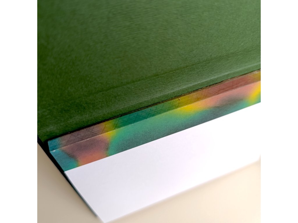 Nejedná o strojovou velkovýrobu. Každý kus jsem vytvořila s využitím technik poctivého knihařského řemesla. Připouštím možnou odchylku +-1%. V žádné fázi nebyla použita AI.