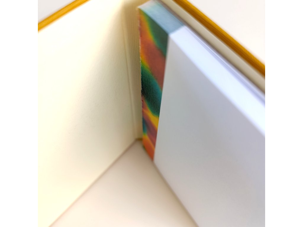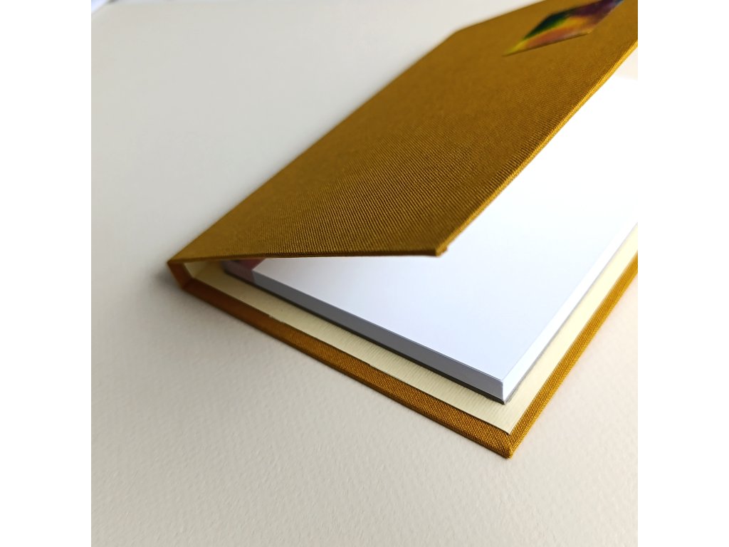 Nejedná o strojovou velkovýrobu. Každý kus jsem vytvořila s využitím technik poctivého knihařského řemesla. Připouštím možnou odchylku +-1%. V žádné fázi nebyla použita AI.
