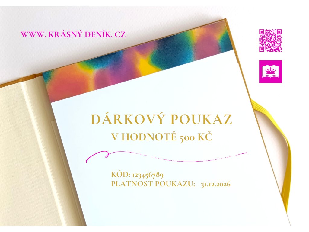 Poukaz je vydán na částku 500/1000/1500 Kč, kterou lze využít na nákup zboží na e-shopu www.krasnydenik.cz - Platnost