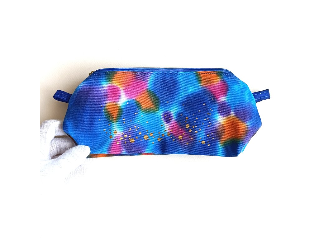 Pouzdro je vyrobeno z pevného plátna. Je zdobeno autorskou malbou. Sladěno v designu "Horké odpoledne".