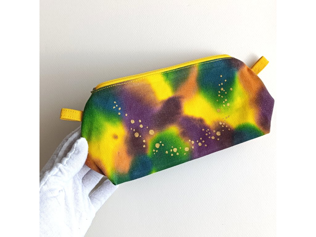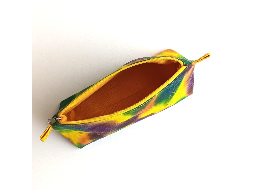 Pouzdro je vyrobeno z pevného plátna. Je zdobeno autorskou malbou. Sladěno v designu "Horké odpoledne".